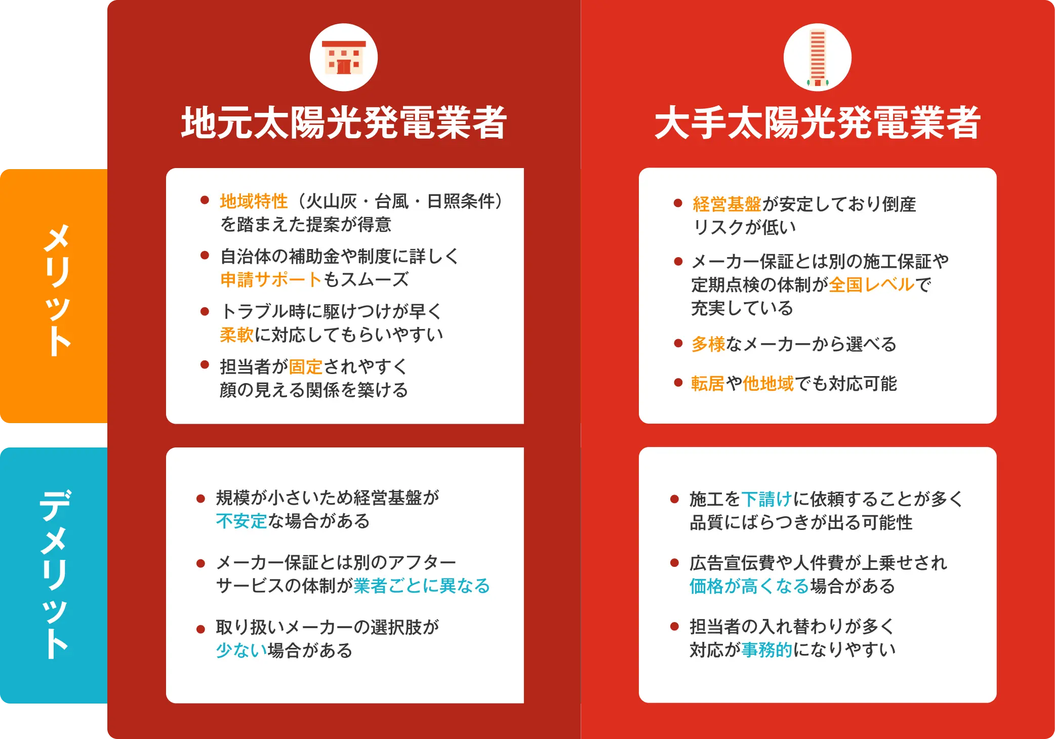 大手業者と地域密着業者から